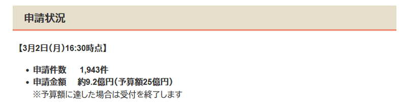 現在の申請状況が熊本県のホームページに掲載されていました。