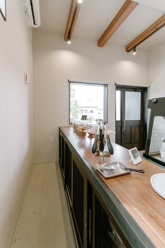 オーナーさまがお一人で製造販売されるので、オーナーさまもお客様も使い(利用)やすく、清潔に保てるお店を希望されました。
