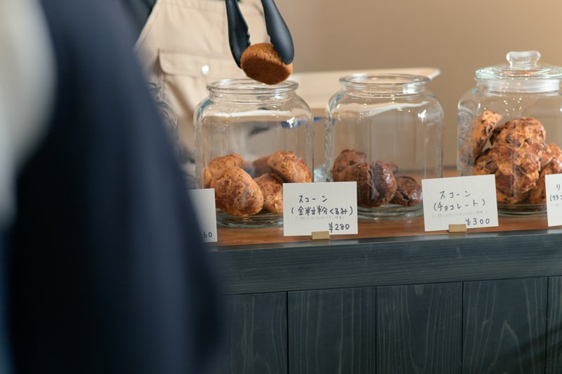 販売されているものは日によって異なりますがこの日はスコーンやタルト(上写真)などの焼菓子が並んでおりました。
